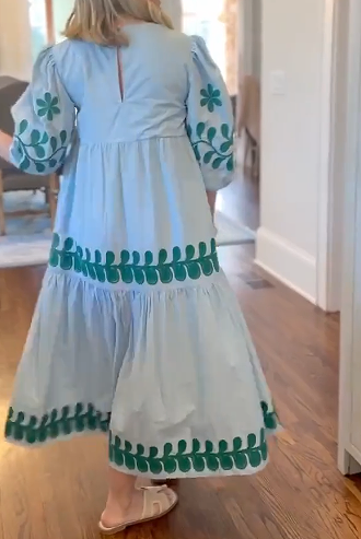 Katherine D. This is the perfect spring dress! Love the details. You can wear with cute tennis shoes for a more casual look or dress it up with accessories and cute sandals.