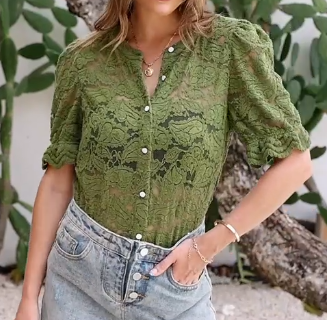 Elegant Lace Short Sleeve Shirt