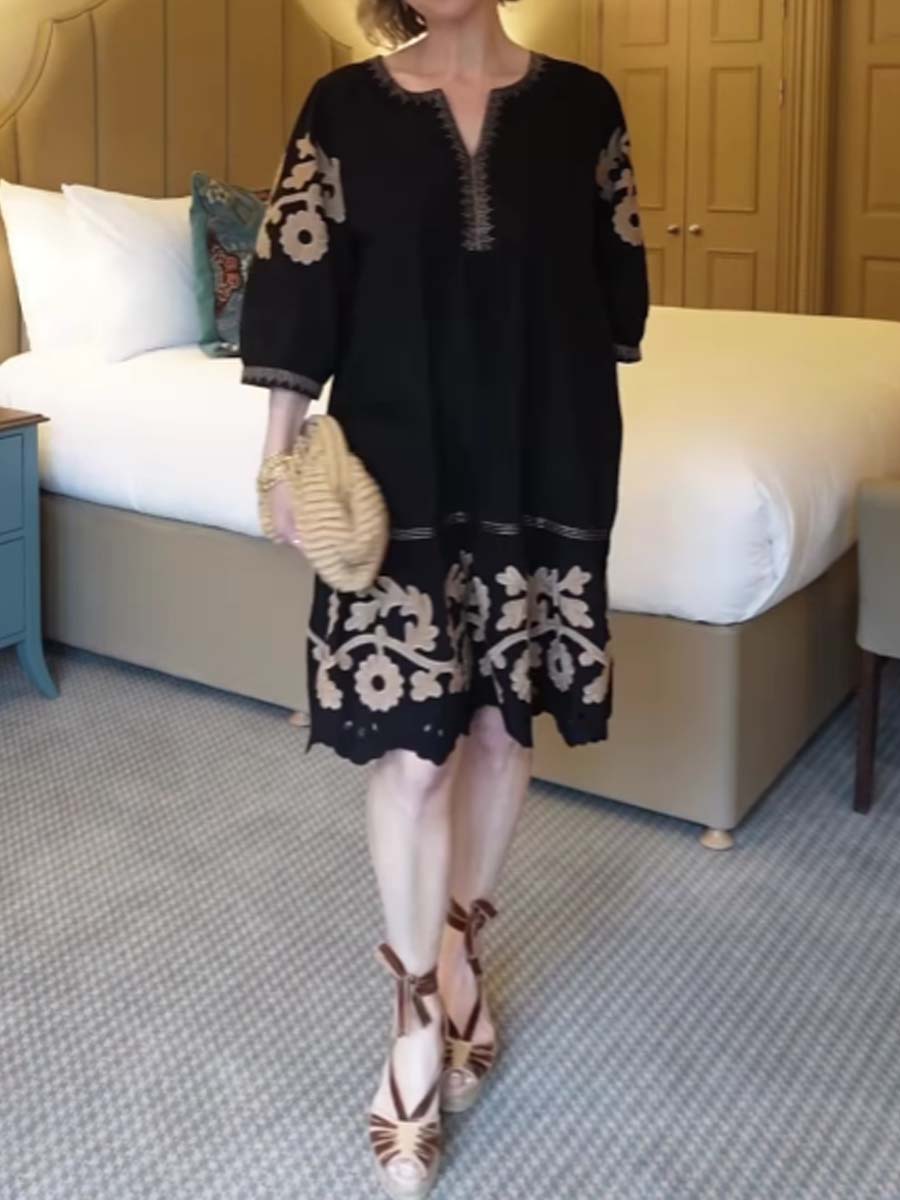 Embroidered Cutout Loose Mini Dress