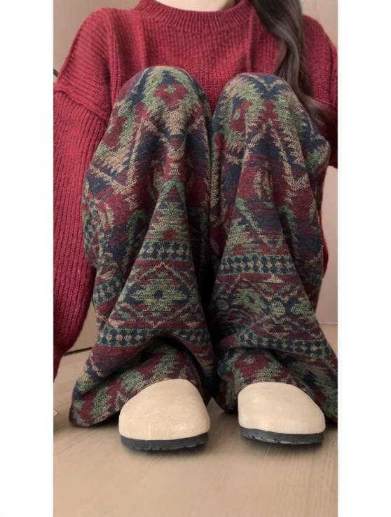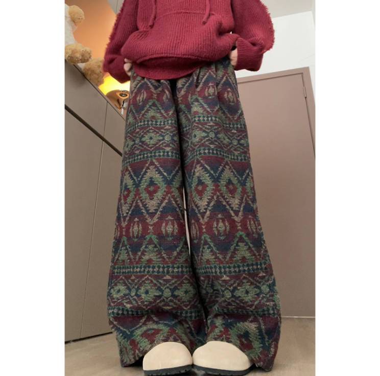 Ethnic Jacquard Wide Leg Pants
