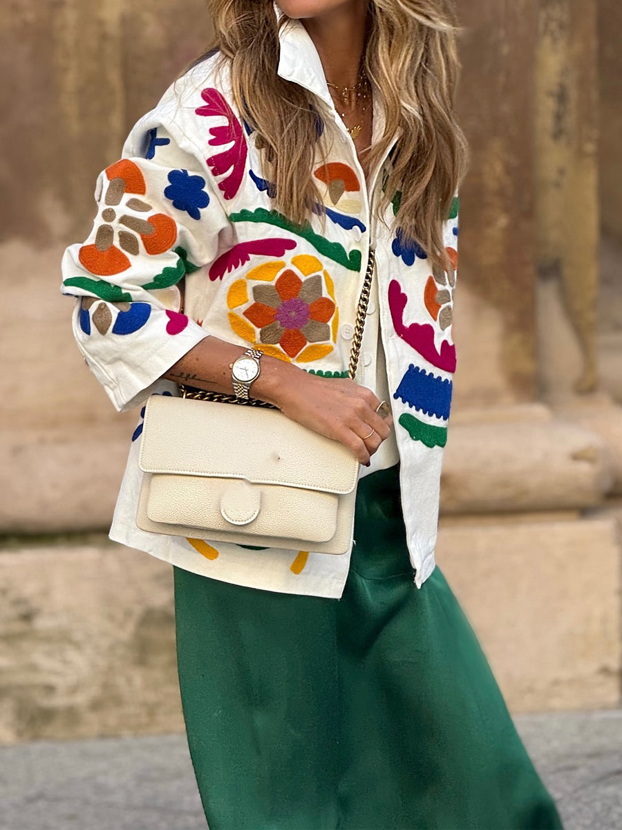 Fashion Print Totem Embroidered Jacket
