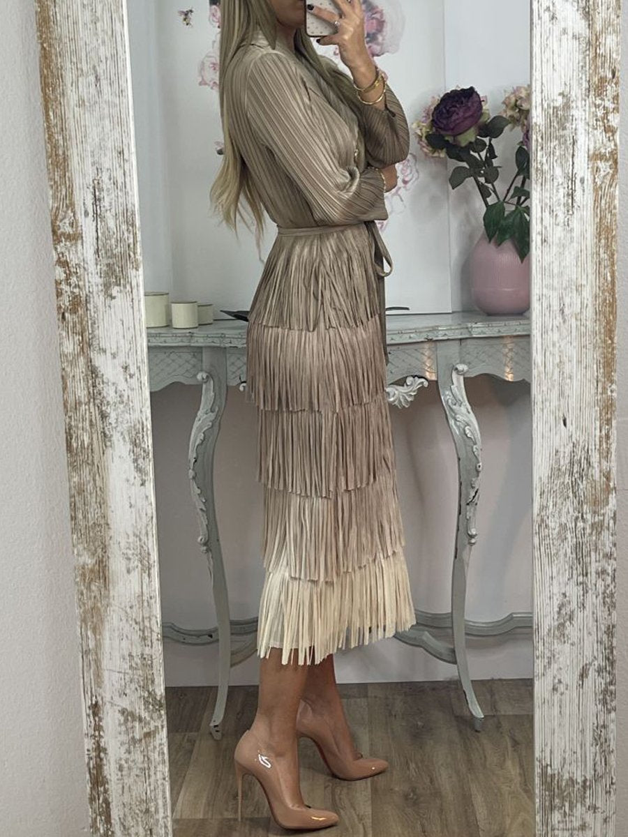 Gradient Fringe Lace Up Dress