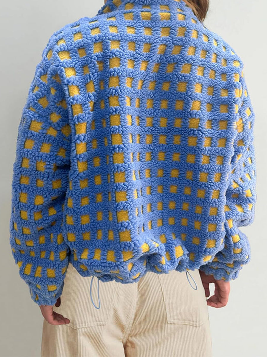 Lamb Wool Plaid Fashion Casual Loose Coat