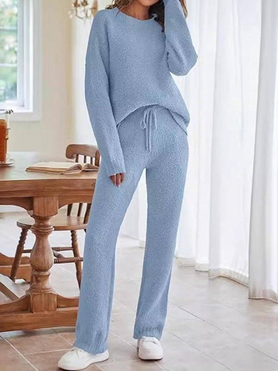 Solid Women's Round Neck Long Sleeve Warm Suit