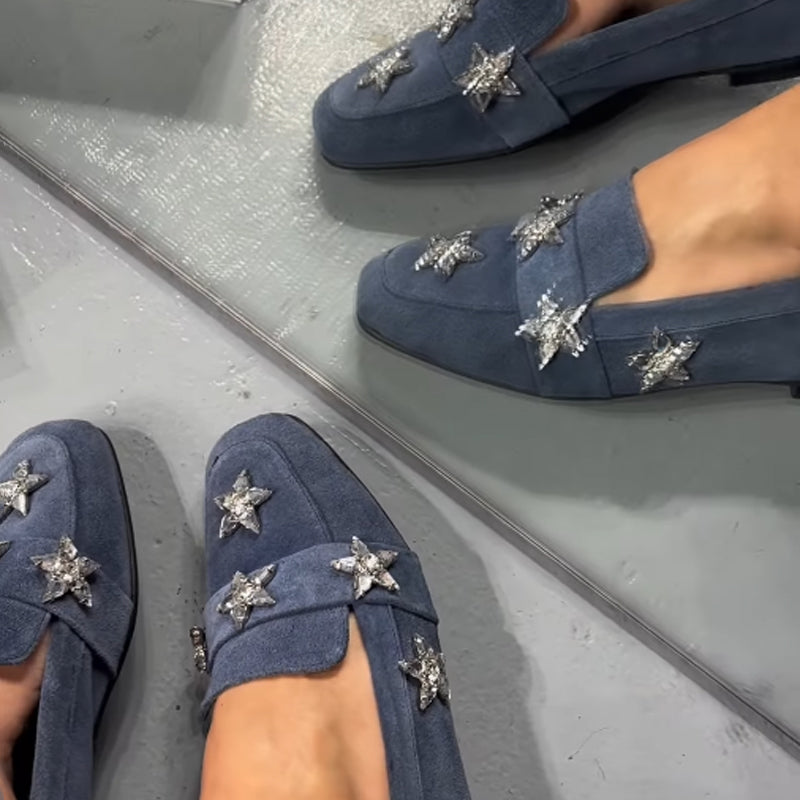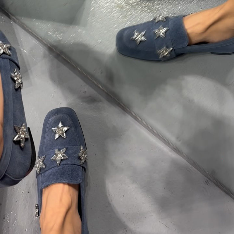 Star Rhinestone Sparkle Square-toe Flat Slip-on Loafers