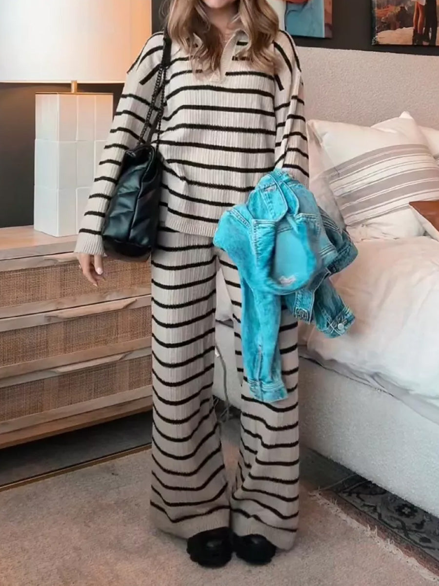 Striped Long Sleeve V Neck Sweater 2 Piece Sets