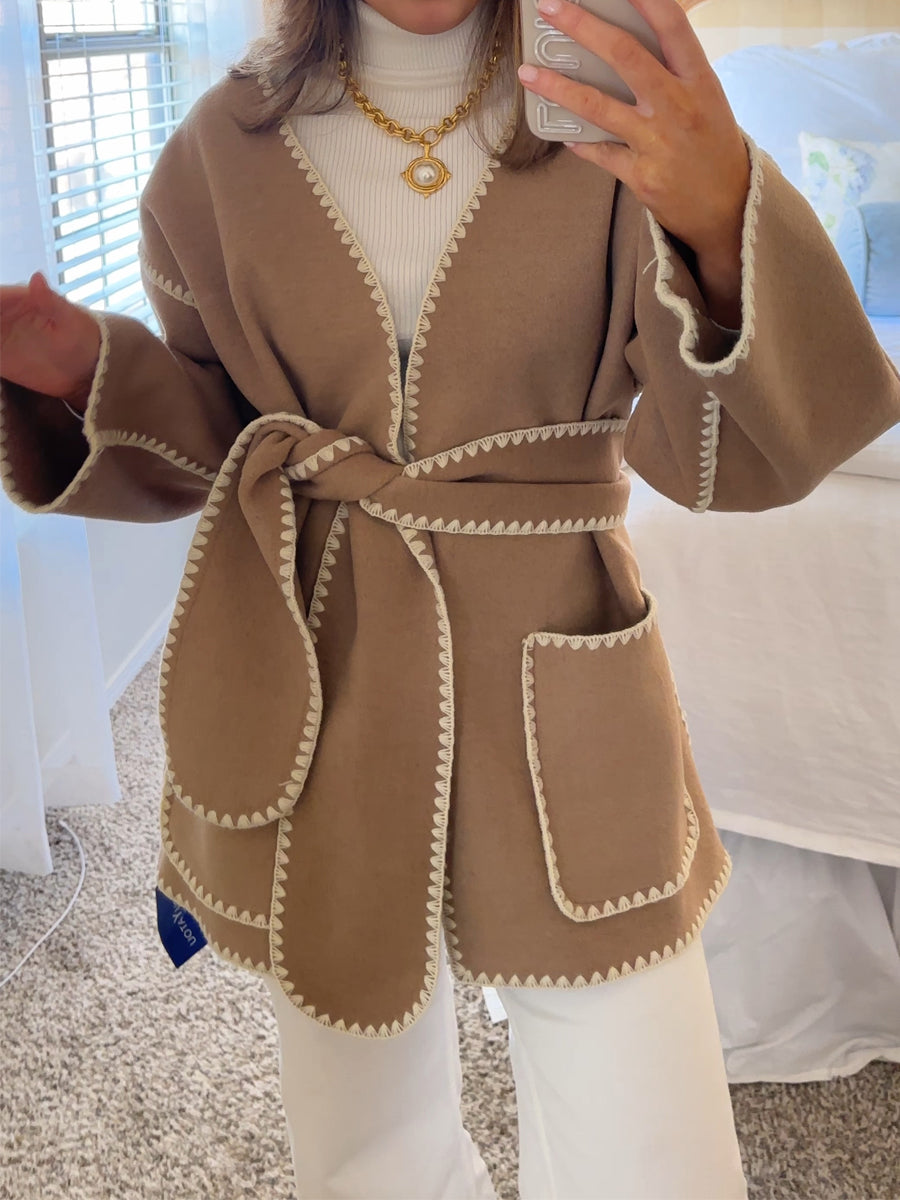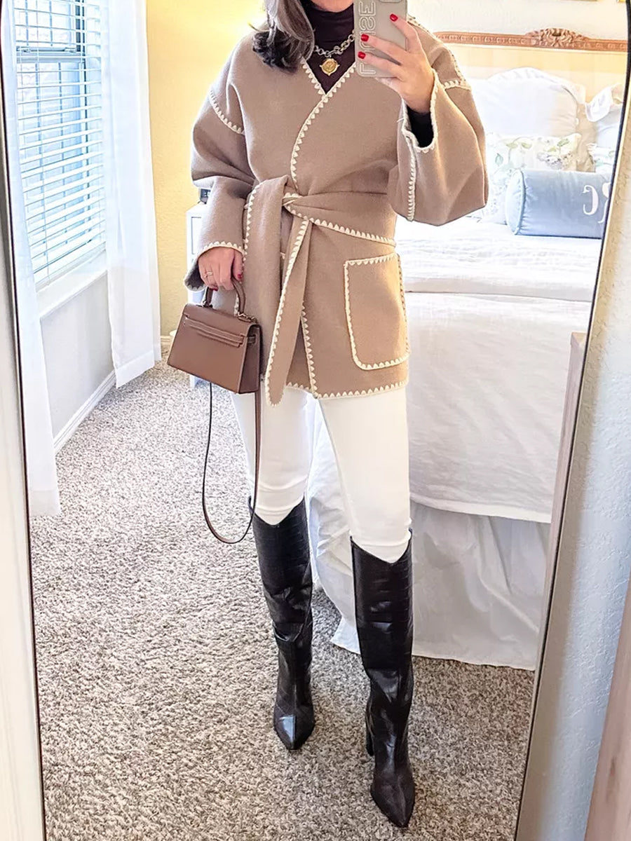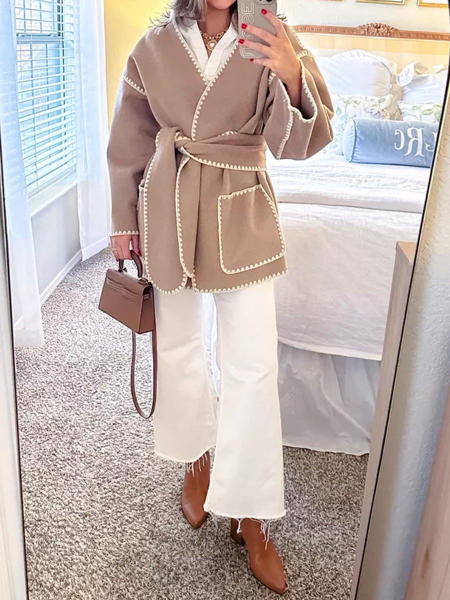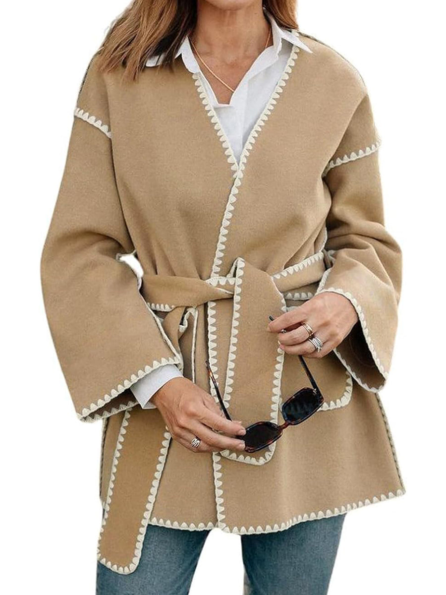 V Neck Lace Up Oversized Winter Wool Cardigan