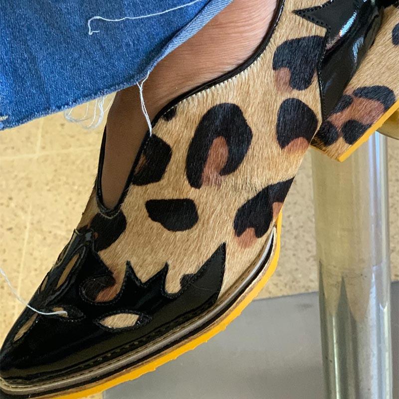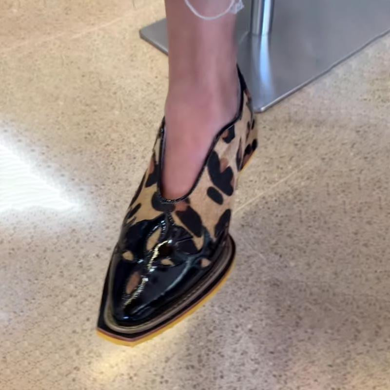 Women's Fashion Pointed Leopard Thick Heel Shoes